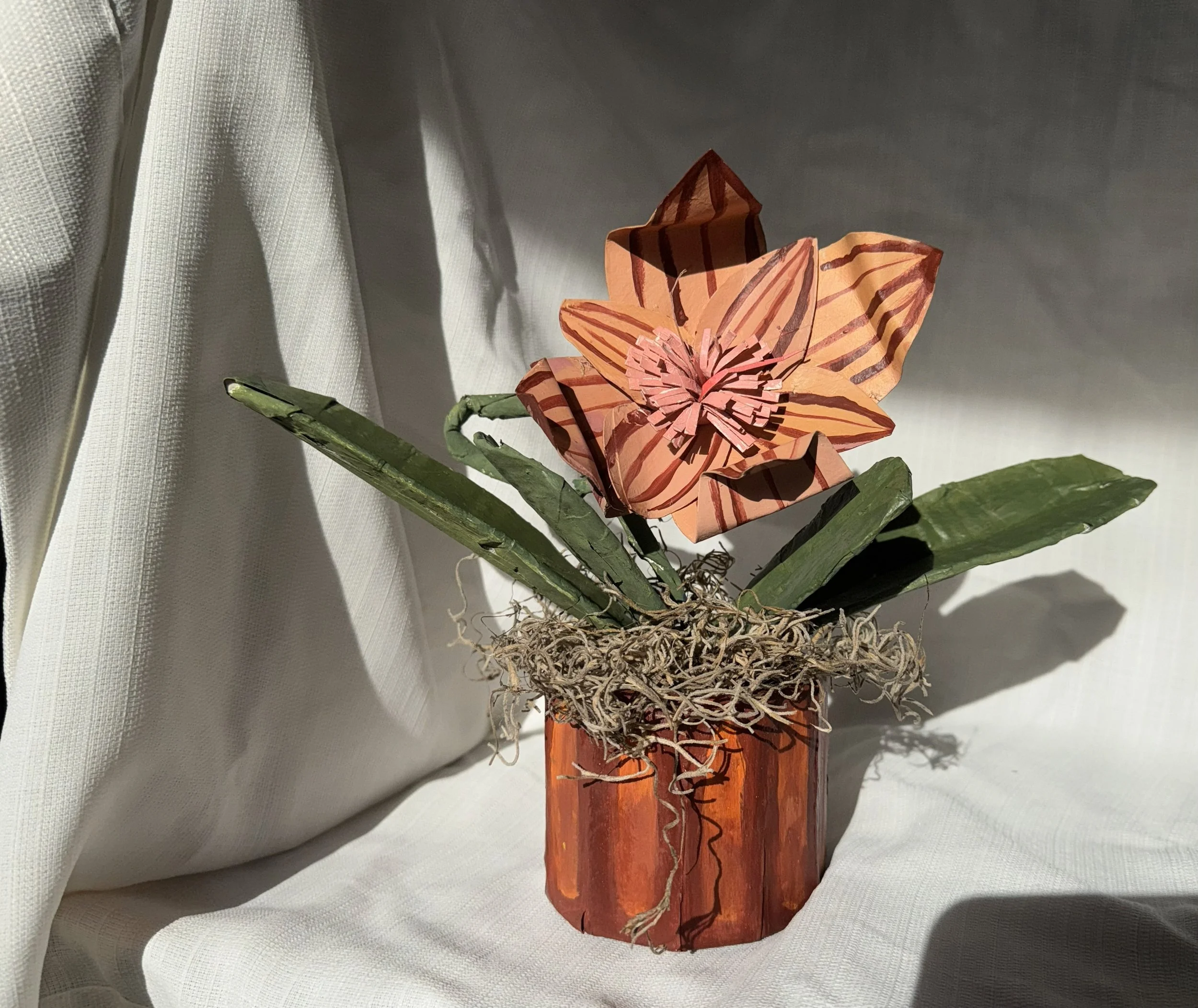 multimedia sculpture (cardboard, paper mache, acrylic paint, metal wire)
